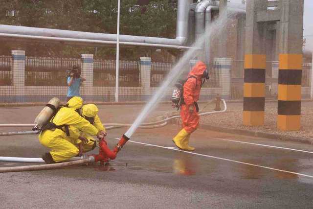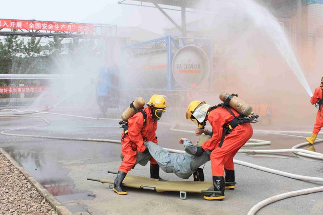 6月21日上午,9時40分,江山股份氯氣站一輛裝有20噸液氯的槽罐車在接卸液氯作業(yè)時,管道“發(fā)生”氯氣泄漏,氯氣向周邊擴散,影響了附近企業(yè)和居民的人身安全……這是南通市氯氣泄漏事故應(yīng)急綜合演練中的一幕。 由市政府主辦、江山股份承辦的南通市氯氣泄漏事故應(yīng)急綜合演練是2012年南通市安全生產(chǎn)月的“重頭戲”, 此次應(yīng)急演練重在提高政府、職能部門、企業(yè)應(yīng)對危險化學(xué)品事故的應(yīng)急處置能力,最大限度減少因安全生產(chǎn)事故給企業(yè)和人民群眾造成的財產(chǎn)損失和人員傷亡。 由于氯氣是具有刺激性氣味的有毒氣體,可以溶解于水,因此應(yīng)急處理主要是通過噴灑形成水霧的方法來降低氯氣濃度,控制擴散范圍?,F(xiàn)場用紅色煙霧代替黃綠色氯氣。演練中,市安監(jiān)、公安、消防、環(huán)保、質(zhì)監(jiān)、衛(wèi)生、氣象等部門積極聯(lián)動,各司其職,氣象部門提供風(fēng)力、溫度、濕度等實時數(shù)據(jù),環(huán)保部門負責(zé)空氣中氯氣含量檢測,公安負責(zé)交通管制和疏散救援……僅用了不到40分鐘即圓滿完成了泄漏源堵漏和周邊企業(yè)及居民的疏散工作,充分展示并檢驗了市政府、職能部門及企業(yè)應(yīng)對危險化學(xué)品事故的應(yīng)急處置能力。 副市長徐輝擔(dān)任現(xiàn)場總指揮,并對演練做了綜合點評。江山股份董事長李大軍觀摩現(xiàn)場演練,總經(jīng)理薛健任現(xiàn)場副指揮。