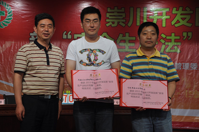 由崇川開發(fā)區(qū)安全生產(chǎn)委員會(huì)組織的新“安全生產(chǎn)知識(shí)競賽”于6月11日下午在金通靈公司舉行,南通紡織控股集團(tuán)紡織染有限公司由陳杰明帶隊(duì),陳云莉、王建興、吉王倩三人組成的代表隊(duì)參加了此次比賽。經(jīng)過緊張激烈的角逐,最終,紡織染代表隊(duì)榮獲比賽二等獎(jiǎng),南通崇川區(qū)安全監(jiān)督局副主任毛長平為我公司獲獎(jiǎng)隊(duì)員頒發(fā)了榮譽(yù)證書。