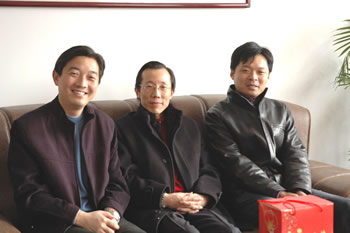 董事長楊揚與副董事長兼縱橫國際董事長陳照東、縱橫國際總經(jīng)理凌衛(wèi)國在慰問時合影