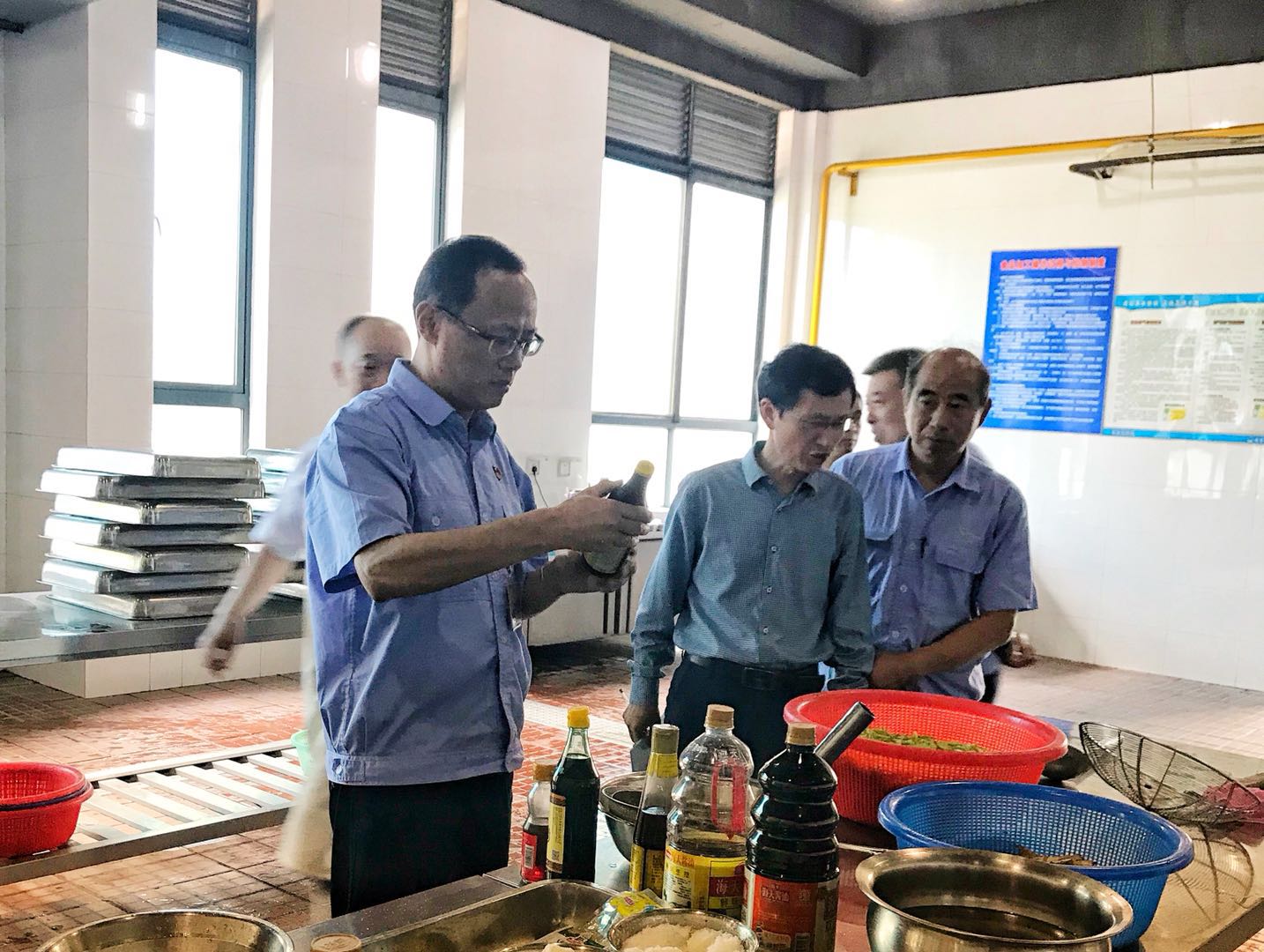 檢查人員深入食品原料庫(kù)房、操作間、洗碗間、留樣室等食堂的每個(gè)功能間,通過現(xiàn)場(chǎng)查看、詢問了解、檢查臺(tái)賬的方式對(duì)餐具消毒、原材料采購(gòu)、食材制作加工、食品留樣等環(huán)節(jié)進(jìn)行了細(xì)致檢查。對(duì)于檢查過程中發(fā)現(xiàn)的問題,要求立即整改。從檢查情況來看,兩個(gè)食堂整體衛(wèi)生狀況好、管理規(guī)范、操作流程符合要求。 沈鋒強(qiáng)調(diào),食堂要嚴(yán)控食材進(jìn)貨渠道,嚴(yán)把材料源頭關(guān),確保食品安全衛(wèi)生。此次檢查,進(jìn)一步提高了食堂從業(yè)人員的衛(wèi)生安全責(zé)任意識(shí),規(guī)范了食堂安全管理,保障了廣大職工舌尖上的安全。
