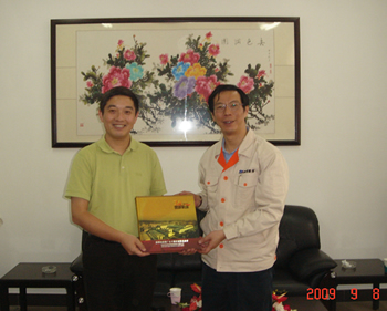 昆明機床總經(jīng)理張曉毅向陳董事長贈送廠慶紀念品 |