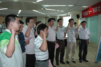 6月30日,集團黨委召開紀念“七一”暨表彰大會,集團領導班子成員、所屬各基層黨組織負責人、優(yōu)秀黨員及優(yōu)秀黨務工作者代表70余人出席。 會上,集團黨委授予南通科技黨委、江山股份黨委、石化總支、離休支部以及產(chǎn)控直屬支部“五好”黨組織稱號,表彰了錢永康等47名優(yōu)秀黨員和陶坤山等23名優(yōu)秀黨務工作者。 南通科技黨委代表“五好”黨組織做了《緊扣中心服務大局、凝心聚力發(fā)揮作用》的交流發(fā)言,優(yōu)秀黨務工作者及優(yōu)秀黨員代表也結(jié)合各自實際,介紹了圍繞經(jīng)濟工作、創(chuàng)新開展黨建工作的經(jīng)驗和堅定信念、立足本職、爭當優(yōu)秀黨員的先進事跡。 集團黨委書記、董事長陳照東代表黨委作報告。他總結(jié)了2009年黨建工作,通報了今年上半年集團經(jīng)濟運行和主要工作情況,以“突出重點,全面完成年度目標任務”為題就下半年經(jīng)濟工作提出要求,以“開展創(chuàng)先爭優(yōu)”和“爭做勤廉表率”為重點就下一階段黨建工作作出部署。 會議號召各級黨組織和全體黨員抓住經(jīng)濟復蘇機遇,將黨建工作與經(jīng)濟工作緊密結(jié)合,抓好基層組織和黨員隊伍建設,加強黨風廉政建設和監(jiān)督保障工作,為完成全年目標、實現(xiàn)經(jīng)濟跨越發(fā)展而努力拼搏!