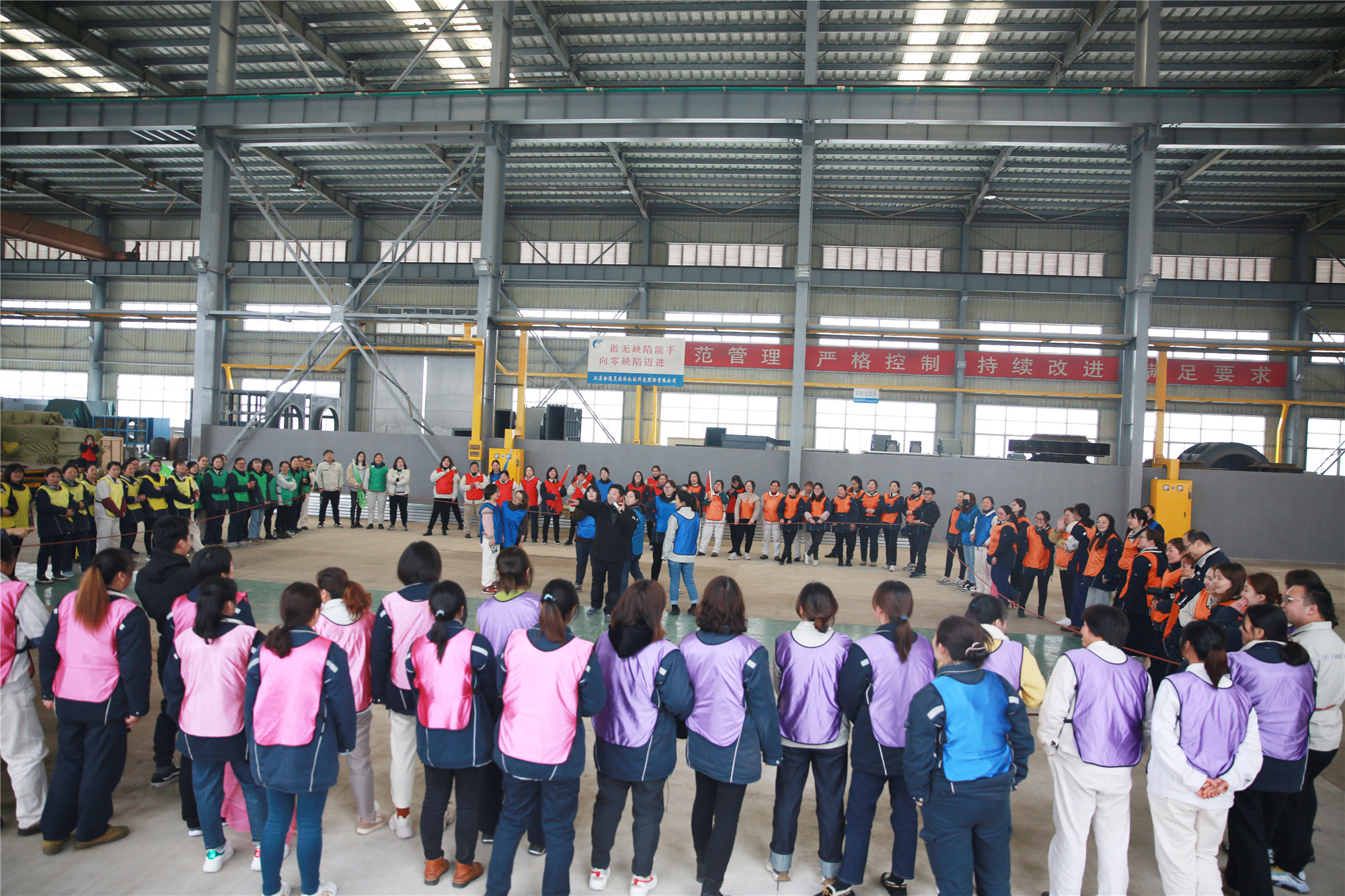 3月8日下午, 一百多名女職工歡聚2號車間,在教練的帶領(lǐng)下,分成了10個小組,按照要求分別設(shè)計了自己隊的隊名、隊徽、口號、隊歌,并依次展示了團(tuán)隊風(fēng)采。在充滿樂趣的熱身小游戲后,便開始了“坦克大戰(zhàn)”、“環(huán)游世界球”、“動力繩圈”等團(tuán)隊拓展項目。在彼此信任、相互溝通、集體協(xié)作的氛圍中,各小組成功完成了此次拓展任務(wù)。參加此次活動的廣大女職工們有長期伏案的科員,有奮戰(zhàn)一線的工人,也有集團(tuán)中高層領(lǐng)導(dǎo),在新組建的團(tuán)隊中,大家拋開身份,融入隊伍,在隊長的帶領(lǐng)下,克服困難,團(tuán)結(jié)一心,共同為隊伍加分增光。 此次拓展活動,既緩解了女職工們工作的疲憊和壓力,又增進(jìn)了同事間的友誼,增強了團(tuán)隊凝聚力,大家在娛樂中感受到團(tuán)隊的力量。集團(tuán)黨委副書記、工會主席李建兵給女工們送上節(jié)日的祝福,他表示,廣大女職工們在此次活動中充分展示了巾幗風(fēng)采,彰顯出金通靈女工隊伍的魅力,在今后的工作中,大家要時刻握緊手中的“動力繩”,勁往一處使,力往一處用,跟著團(tuán)隊的步調(diào),以奮發(fā)昂揚的姿態(tài)繼續(xù)前行! |