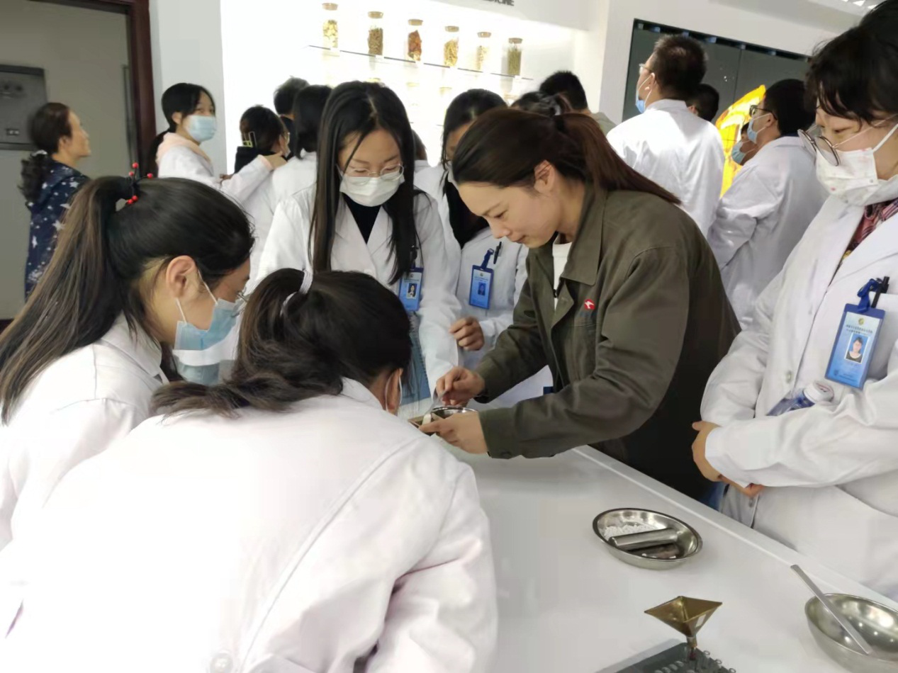 質(zhì)管處質(zhì)量工程師何峰帶領(lǐng)一行人參觀了多功能展廳,介紹了公司的基本情況、主打產(chǎn)品的功能功效。不少學(xué)生表示服用過(guò)公司正柴胡飲顆粒、王氏保赤丸產(chǎn)品,還有學(xué)生對(duì)王氏保赤丸的抄丸工具以及操作方法產(chǎn)生了濃厚興趣,現(xiàn)場(chǎng)體會(huì)抄丸、蓋塞等步驟。何峰還向?qū)W生隆重介紹了自己種植的“小藥園”,有公司使用的中藥材金蕎麥、半夏和佛甲草等,介紹了它們的功效、藥用部位。 隨后學(xué)生們參觀了王氏保赤丸生產(chǎn)車間,車間管理人員詳細(xì)介紹了王氏保赤丸的歷史,國(guó)家非遺技藝泛丸工序的制作過(guò)程,大家紛紛感嘆中華中醫(yī)藥制作技藝的精妙。 |