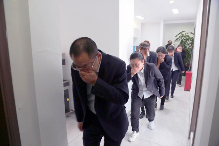 隨后公司組織全體員工進行了疏散演練,首先由公司安全員在6樓辦公區(qū)域發(fā)出火情報告,隨后黃色煙霧迅速彌漫整個辦公區(qū)域,根據(jù)應急預案逃生指令,安全員通知各科室人員迅速撤離,各科室人員按照消防通道迅速撤離,從六樓辦公區(qū)域撤離到1樓安全區(qū)域,整個疏散演練耗時4分鐘,疏散演練成功告捷。